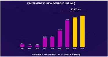 Of this, ₹350 million is earmarked for spending in FY26 itself, with the remainder allocated in subsequent years. These investments pay back over 5 years. With this strategy, Saregama intends to acquire 25% to 30% of all new content released, but does not plan to increase its market share beyond the current 30%.