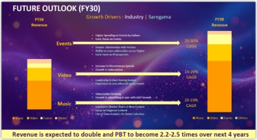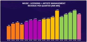 Video segment revenue, however, declined 23% to ₹35.7 crore, due to a slight loss on the Malayalam film (Bazooka). Retail (Carvaan) revenue also fell 31% to ₹17 crore, due to a decline in volume. Its event segment revenue rose 410%, albeit from a small base, to ₹5.1, propelled by Himesh Reshammiya’s CAP-MANIA Tour 2025.