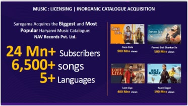 In line with this strategy, Saregama acquired the NAV Records catalogue, comprising over 6,500 tracks and a subscriber base of more than 24 million across popular YouTube channels. This acquisition, funded entirely through QIP money, fills a gap in the Haryanvi market, and revenue is expected to flow from Q3 onwards.