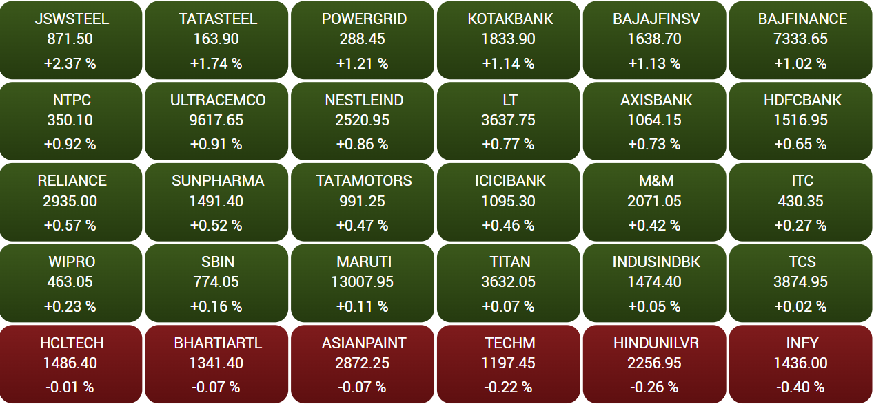 JSW Steel, Tata Steel, Cipla, Hindalco, and Power Grid Corporation were the top gainers in the Nifty 50. While Tata Consumer Products, Infosys, HUL, Tech Mahindra, and Titan were the major losers in the Nifty 50 on April 24.