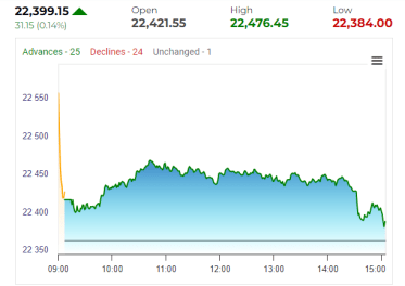 Commenting on the Technical outlook of Nifty Rupak De, Senior Technical Analyst, LKP Securities, said The Nifty remained sideways throughout the session as it failed to provide any directional breakout. However, the overall trend remains positive as the index closed above the critical moving average. The Relative Strength Index (RSI) is showing a bullish crossover with a reading below 60. On the higher end, the range of 22350-22400 is likely to act as a resistance zone; a decisive breakout above 22400 might trigger a rally in the market. On the lower end, support is positioned at 22250; a breach below this level might weaken the bullish sentiment.
