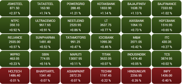 Cipla, JSW Steel, Tata Steel, Hindalco, Power Grid Corp are the top gainers on NSE Nifty 50 index whereas top laggards include Tata Consumers, Titan Company, Tech Mahindra, Grasim, SBI Life Insurance.