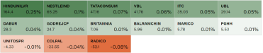 Other notable gainers included Policy Bazaar at 2.46%, Naukri at 1.71%, LTIMindtree at 0.71%, and Senco, which saw a rise of 0.64%. These upward movements highlight a robust trend among key players in the market.