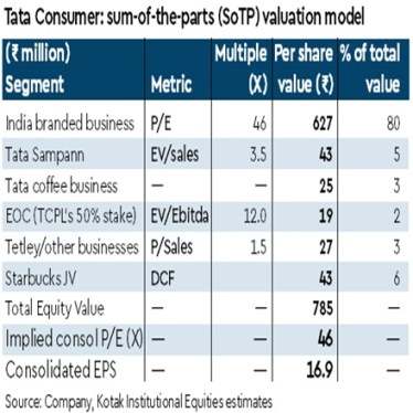 TCPL is present in packaged water through NourishCo (75% growth to Rs 600 crore in FY2023 estimates; key brands Himalayan Rs 70/liter, Tata Copper Plus