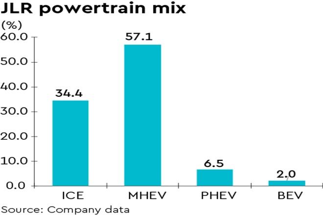 b) JLR’s electrified powertrain contribution to volumes has risen to 66% (~8.5% BEV+PHEV) vis-à-vis 53% YoY; however, due to lack of chips they would unlikely be emission compliant in H1 as JLR is prioritising more profitable (SUVs) models;