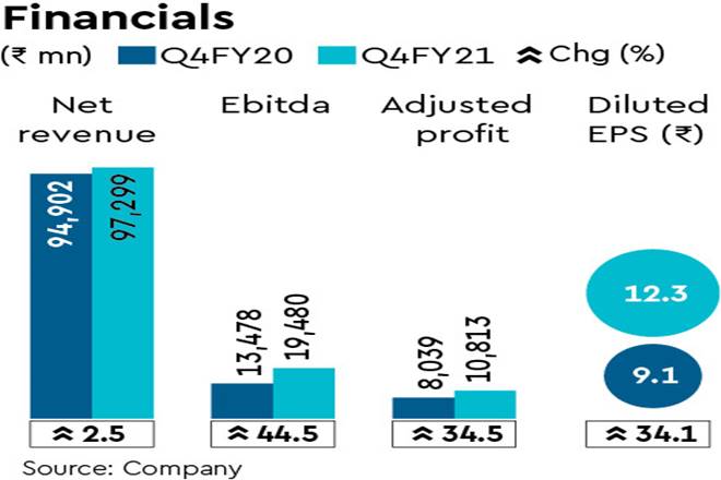 Tech Mahindra posted Q4FY21 revenue growth of 1.6% q-o-q (USD) and 0.7% (CC) to $1,330 mn, lower than our and Street’s estimates of 1.5% (USD) and 1.9% (cc), respectively. Ebit margin expanded 60bps q-o-q to 16.5%, surpassing our and Street’s estimates of 16% and 15.8%, respectively. Profit declined 18.5% q-o-q to Rs 10,814 mn vis-à-vis our estimate of Rs 12,179 mn. New deal wins during the quarter were at $1,043 mn, up 129% q-o-q.