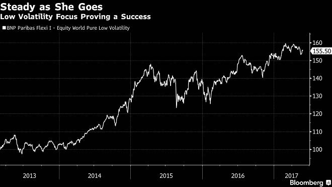 The BNP Paribas Flexi I Equity World Pure Low Volatility fund held companies such as Starhub Ltd., American Water Works Co. and telecom operator Telus Corp. as of March 31. It returned 12 percent a year on average over the past three years and beat 82 percent of its peers, according to data compiled by Bloomberg.