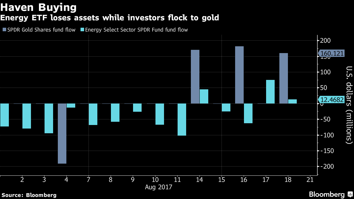 Meanwhile, investors added $321 million to the SPDR Gold Shares exchange-traded fund so far this month, while pulling $540 million from the SPDR Energy Select Sector fund, according to data compiled by Bloomberg.