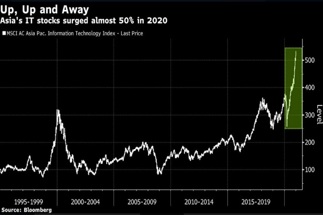 That’s not to say tech — the hottest trade of 2020 — is going on the back-burner. The pandemic has accelerated trends such as e-commerce and remote working, which means Taiwanese and Korean chipmakers, Internet names in China and data center stocks are among favorites in the new year.