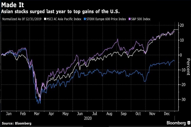 After narrowly beating their U.S. peers for the first time in three years in 2020, Asian stocks could see another strong year, analysts say.