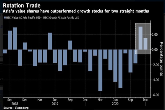 A strengthening economic rebound in China and Asia’s low valuations relative to the U.S. and Europe are also key positives that are seen helping regional stocks tide over potential risks arising from any fresh virus outbreaks, hurdles in vaccine distribution and worsening of Sino-American relations.