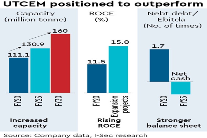 We already factor in capex of Rs 75 bn over FY22-23e for these expansions and maintenance/operational efficiencies capex. We expect UTCEM to generate healthy OCF of Rs 190 bn over FY22-23e and turn net debt free in FY23e.