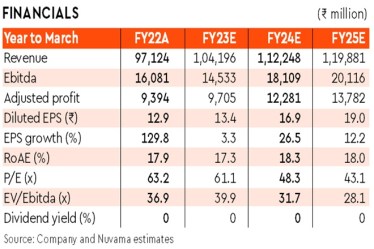 We anticipate that United Spirits (UNSP) will experience a gradual recovery in FY24 driven by strong consumer demand that is likely to hold up, given that liquor is not a daily purchase item, and is associated with celebration and experience. Furthermore, the company’s ability to tap into the latest trends through faster innovation is expected to boost its growth prospects. In addition, United Spirits is actively collaborating with states on pricing and implementing sustained revenue growth management initiatives, which are expected to help the company gradually recoup its margins. The supply chain agility programme, which involves a cost of Rs 5 billion, is also expected to eliminate legacy costs, while the slump sale is likely to lead to operating deleverage for 12–18 months. Overall, we remain optimistic about United Spirits’ long-term growth prospects.