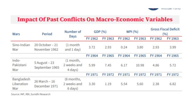 A look now at how the past conflicts have impacted the macro-economic scenario. Kotak Mutual Fund highlighted that “In the past conflicts, while there has been limited impact on growth, we have seen increase in inflation and fiscal deficit.”