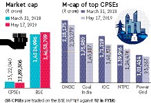 The market capitalisation of listed CPSEs (there are 55 of them) stood at `12.89 lakh crore on May 17, 2019, down 15.3% from `15.22 lakh crore as on March 31, 2018. During the same period BSE m-cap rose 3.05%. Besides assorted policy obligations on these firms which make it difficult for them to operate in a commercial environment, the shrinking of m-cap of CPSEs is also due to fierce competition from private sector which they find it difficult to put up with.