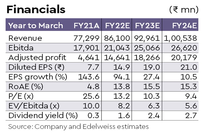 The stock is likely to stay volatile given uncertainty around leadership and disruption in media. Longer term, corporate governance standards would improve. We expect strong recovery in ad spends industry-wide with FMCG companies ramping up marketing given the upcoming festive period. Improving mobility should help recovery in ad spends across sectors as we move into H2FY22; retain ‘Buy’ with target price of Rs 343.