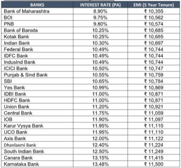 Below you can compare the interest rates of more than 20 banks for a loan amount of Rs 5 lakh for a 5-year tenure. It will help you take a decision based on your financial need.