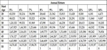 Here is the data compiled in a table by the Pension Fund Regulatory and Development Authority (PFRDA), showing the required monthly investments and average returns needed for individuals in different age groups to reach a retirement corpus of Rs 10 crore. The age groups shown in the table range from 20-year-olds to 55-year-olds, with the return on investment ranging from 5% to 14%.