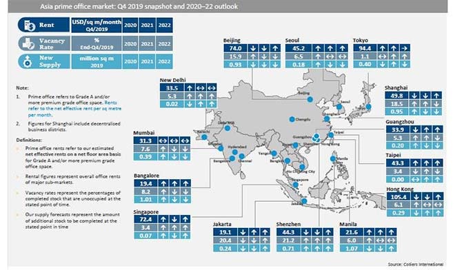 “Among Asian emerging markets, India has been pushing interest rates downwards. Persistent very low or negative real interest rates in Asia should help lift confidence among major occupiers to recover after a generally difficult 2019. At the same time, property investors and developers can expect funding costs to remain very modest. This situation should support demand for investment in property in most Asian markets,” says Sankey Prasad, Managing Director and Chairman at Colliers International India.