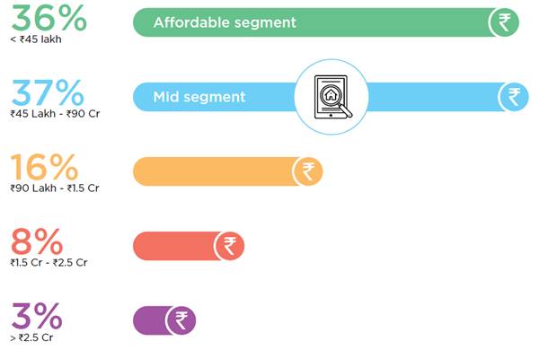 “Affordable & Mid segment properties continue to remain the top choice of maximum property seekers. And, a crisis such as Covid-19 has further strengthened its base. Collectively, 73% home seekers prefer to buy properties priced within Rs 90 lakh budget. Naturally so, multiple government incentives for affordable housing has upped the game for this budget category in the last few years,” informs Thakur.