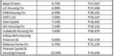 Below are more than 30 financial institutions offering the cheapest interest rates on home loans. You can compare the interest rates and check the tentative EMIs for a loan of Rs 75 lakh for 20 years.