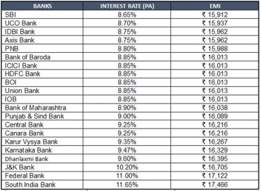 Note: Interest rate on Car Loan for all listed (BSE) Public & Pvt Banks considered for data compilation (Excluding small finance banks and EV loan). Banks for which data is not available on their website are not considered. Data collected from respective bank’s website as on 30 May 23. Banks are listed in ascending order on the basis of interest rate i.e. bank offering lowest interest rate on car loan is placed at top and highest at the bottom. Lowest interest rate offered by the banks irrespective of loan amount is shown in the table. EMI is calculated on the basis of Interest rate mentioned in the table for Rs 10 Lac Loan with a tenure of 7 years (processing and other charges are assumed to be zero for EMI calculation); Interest rates mentioned in the table are indicative and may vary depending on the bank’s T&C.