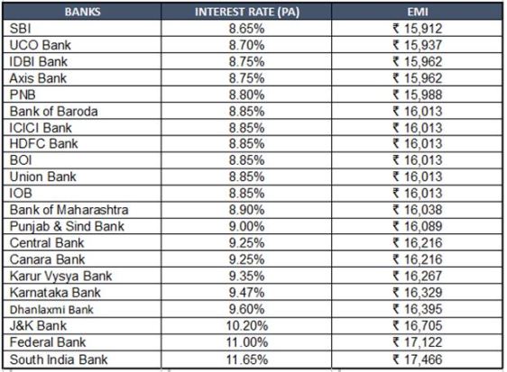 Interest Rates & EMIs for New Car Loan of Rs 10 Lakh for 7-Year Tenure