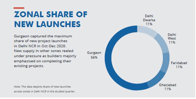 Homebuying trend in Delhi continued to dwindle for the third quarter in the row in Oct-Dec 2020. The stalled redevelopment projects diminished the inventory supply in the city, leaving homebuyers with limited choices. This, coupled with many customers awaiting the launch of DDA housing scheme in January 2021, trimmed the residential sales in Delhi in the quarter ending December 2020.
