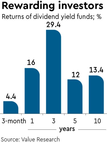 Investors must note that dividend yield stocks are less liquid and there could be periods when they may underperform relative to other stocks. So, those who do not want to take too much risk should invest in a dividend yield fund that has a higher allocation to large-cap stocks.