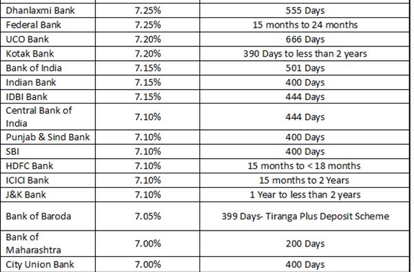 BEST INTEREST OFFERED ON TERM DEPOSITS (Banks, Company and Post office Deposits)