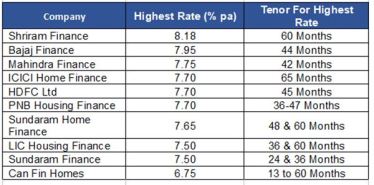 Interest rates as advertised by the company (Rated AA or higher) on 14 Mar 2023. Rates pertain to cumulative retail deposits (Deposit below Rs 1 cr). Rates will change as per the company’s policies. Highest rates (applicable for non-senior citizens) by each company are mentioned here. Some rates are as per special schemes which are for limited periods. Please contact the company to understand the scheme risks and details.