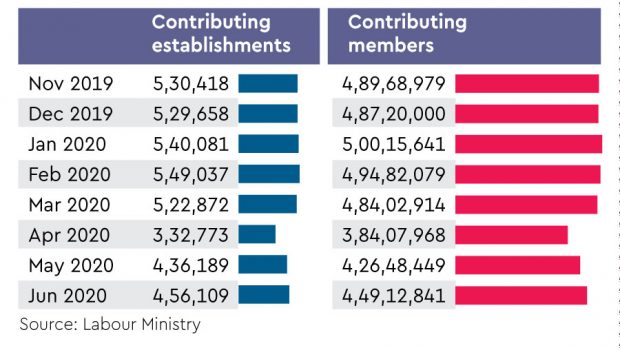 A person familiar with the EPFO’s systems said that the decline in the number of contributing members indicates that 50 lakh people have lost their jobs between January and June. However, he added that it could also mean that their contribution have not come so far, but this may not be the case in most cases since EPFO had given employers the option to separate submission of electronic challan-cum-return from making actual payment for the troubled months.