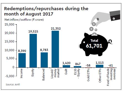The data from Amfi also showed new inflows into mutual fund in the month of August stood at Rs 61,701 crore with most coming from liquid schemes at Rs 21,352 crore.