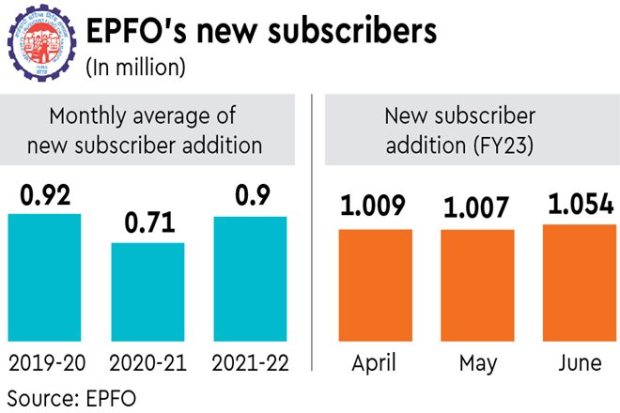 In a statement issued Saturday, the ministry of labour and employment said, “The new enrolment during the month (June) is higher than the monthly average recorded during the last fiscal. New member joining has shown a growing trend since April, 2022.”