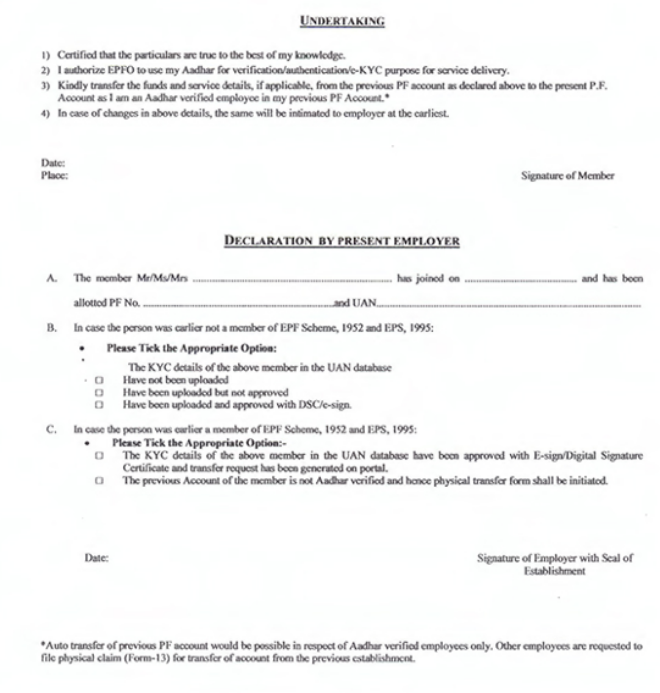 3) However, if the previous UAN number has been linked with Aadhaar, the declaration by the employer of transfer request made by the employee in Form-11 will trigger an auto-transfer process. The whole amount from the old PF account will get transferred to the new one.