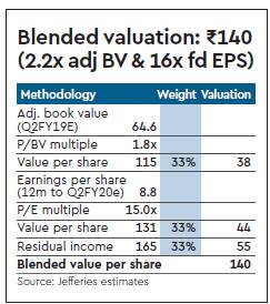 Our PT of Rs 140 is based on 2.2x adj. book (Sep’18E) and 16x forward EPS (12M to Sep’19E). Our valuation is based on an equal-weighted P/B, P/E and residual income model. While valuations are 2 standard deviation out versus the historical median multiples, we believe improvement trajectory is not yet priced in and has a longer tail. We are yet to see the full implication of the RM-driven business origination and liability cross-sell and its impact on the cost-growth dynamics or if the gaps on the liability franchise would narrow down – the headroom for improvement are very much there and intact. On a relative basis, however, most banks are trading within a narrow band around the forward RoE vs P/B trend and FB fits in well in this. Risks: weakness in NRI-CASA and domestic CA flows, inability to rein in costs, asset quality deterioration.