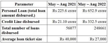 The following table displays the comparison of loans disbursed between May to August in 2021 and during the same period in 2022: