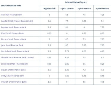 Small Finance Banks often beat their large peers when it comes to fixed deposit interest rates. Take a look at the rates being offered by some of the major small finance banks.
