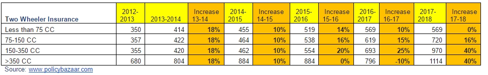 Two wheelers in the 150-350CC category attract a third party insurance premium of Rs 693, but from April 1, the premium will increase up to Rs 970 – a 40 percent hike.
