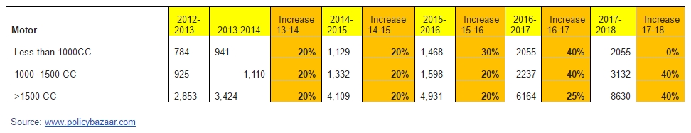However, there will be no hike in the third party premium rates of private cars having an engine capacity of less than 1000 CC as well as two wheelers having an engine capacity of less than 75CC.