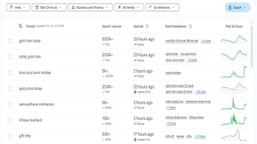 Gold prices continue to be among the top searched keywords in Google Trends — first due to a sharp rally ahead of Diwali, and then a sudden easing afterwards.