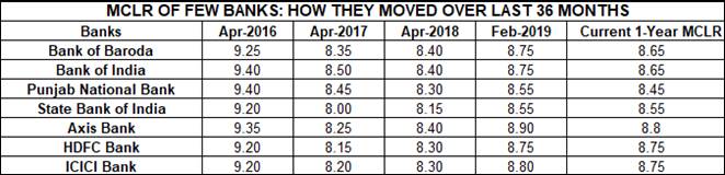 As of February 2019, the average 1-year MCLR for public and private sector banks was 8.75 per cent and 9.3 per cent respectively.