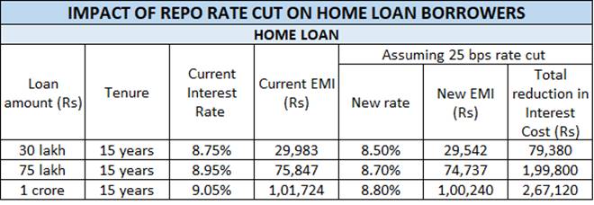 “The 25 bps cut in repo rate will most likely lead banks to reduce their home loan interest rates. However, the quantum of transmission of repo rate cuts will also depend on their cost of deposits, operating costs, etc as these factors are also factored while calculating MCLR. Hence, any increase in these factors may reduce the transmission of reduced repo rates to home loan lending rates, ” says Naveen Kukreja – CEO& Co-founder, Paisabazaar.com
