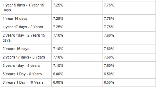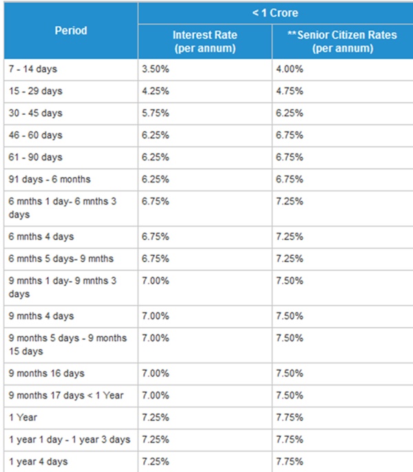 With the latest revision in rates, on deposits below Rs 1 crore, HDFC Bank is now offering 7.25 per cent interest rate on its fixed deposits for 1 year as against 6.85 per cent earlier. For senior citizens, the rate has now been revised to 7.75 per cent from 7.35 per cent earlier. Similarly, for term deposits of 3 years 1 day to 5 years, the bank is now offering 7.10 per cent interest as against 7 per cent earlier, while for senior citizens, the rate has now been revised to 7.60 per cent as against 7.50 per cent earlier.