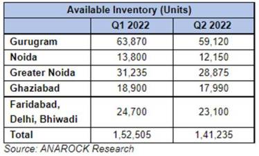 * Delhi, Faridabad and Bhiwadi together have approx. 23,100 unsold units by Q2 2022-end – a 6% decline from 24,700 units by Q1 2022-end.