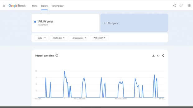 PM JAY portal, Ayushman Card eligibility criteria featured among top searches on Google Trends this week as netizens tried to get their queries related to Ayushman Bharat answered on Internet. Google searches related to Pradhan Mantri Jan Arogya Yojana (PM JAY) have risen in the wake of PM Narendra Modi launching health coverage for senior citizens of 70 years and above under the Ayushman Bharat scheme.