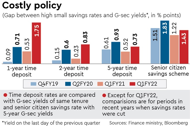 Elevated costs of small savings funds not just dent the exchequer but also force banks to refrain from trimming their deposit rates beyond a point. Consequently, lenders are reluctant to effectively pass on the benefits of monetary transmission to borrowers, even though the Covid-hit economy needs a massive credit push to get back on its feet fast.