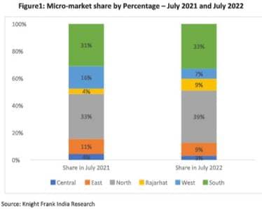 North Zone and South Zone continued to be the best performing zones in terms of home sales in July 2022.The share of North Zone expanded from 33% of the total in July 2021 to 39% in July 2022 as affordable and mid-segment ticket sizes gained traction from homebuyers. The South Zone witnessed a moderate growth in its share from 31% in July 2021 to 33% in July 2022.