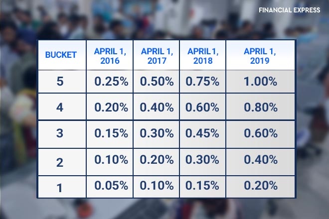 The higher capital requirements are applicable from April 1, 2016 in a phased manner and will become fully effective from April 1, 2019. The additional common equity requirement for different buckets over the four year phase-in period is as under: