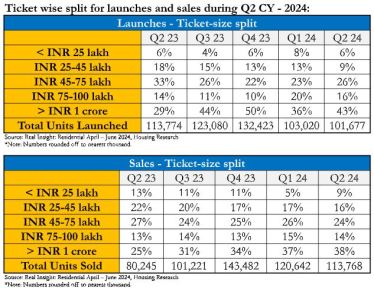 As per data, a total of 101,677 units were launched during the quarter ended June 30, showcasing a marginal decline of 1% from the previous quarter wherein 1,03,020 units were launched. On the other hand, 113,768 units were sold in Q2 2024 against 120,642 in the March quarter.